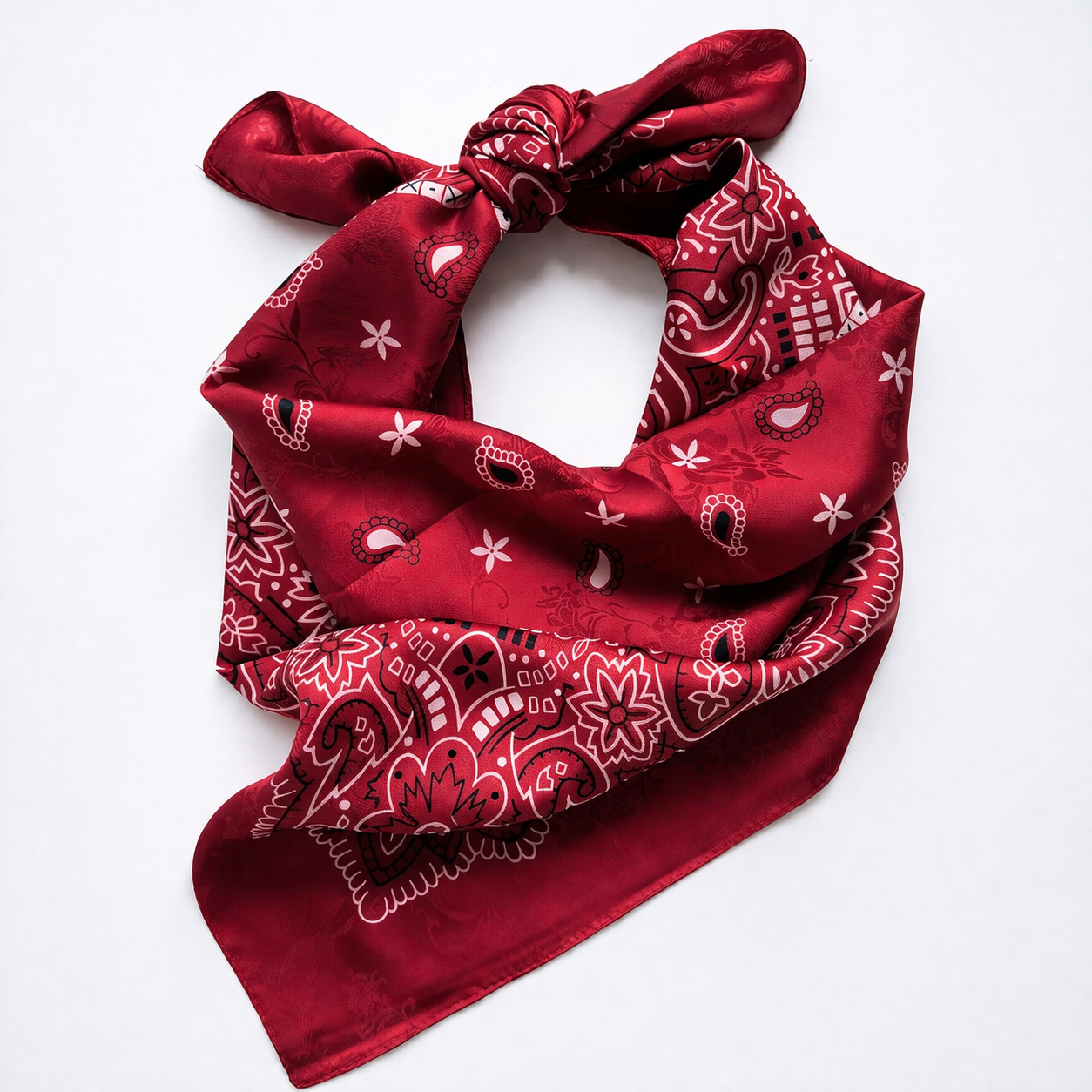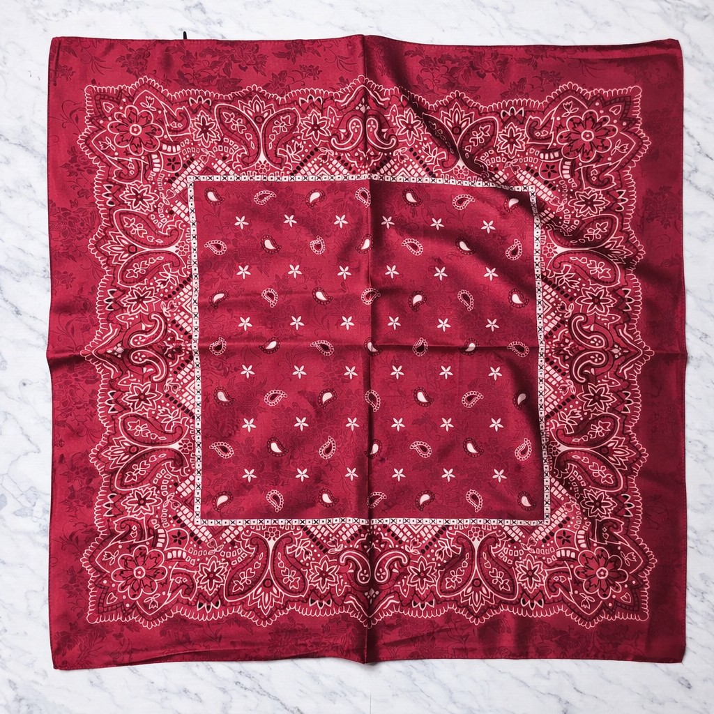 Głęboka, nasycona czerwień połączona z klasycznym wzorem paisley.