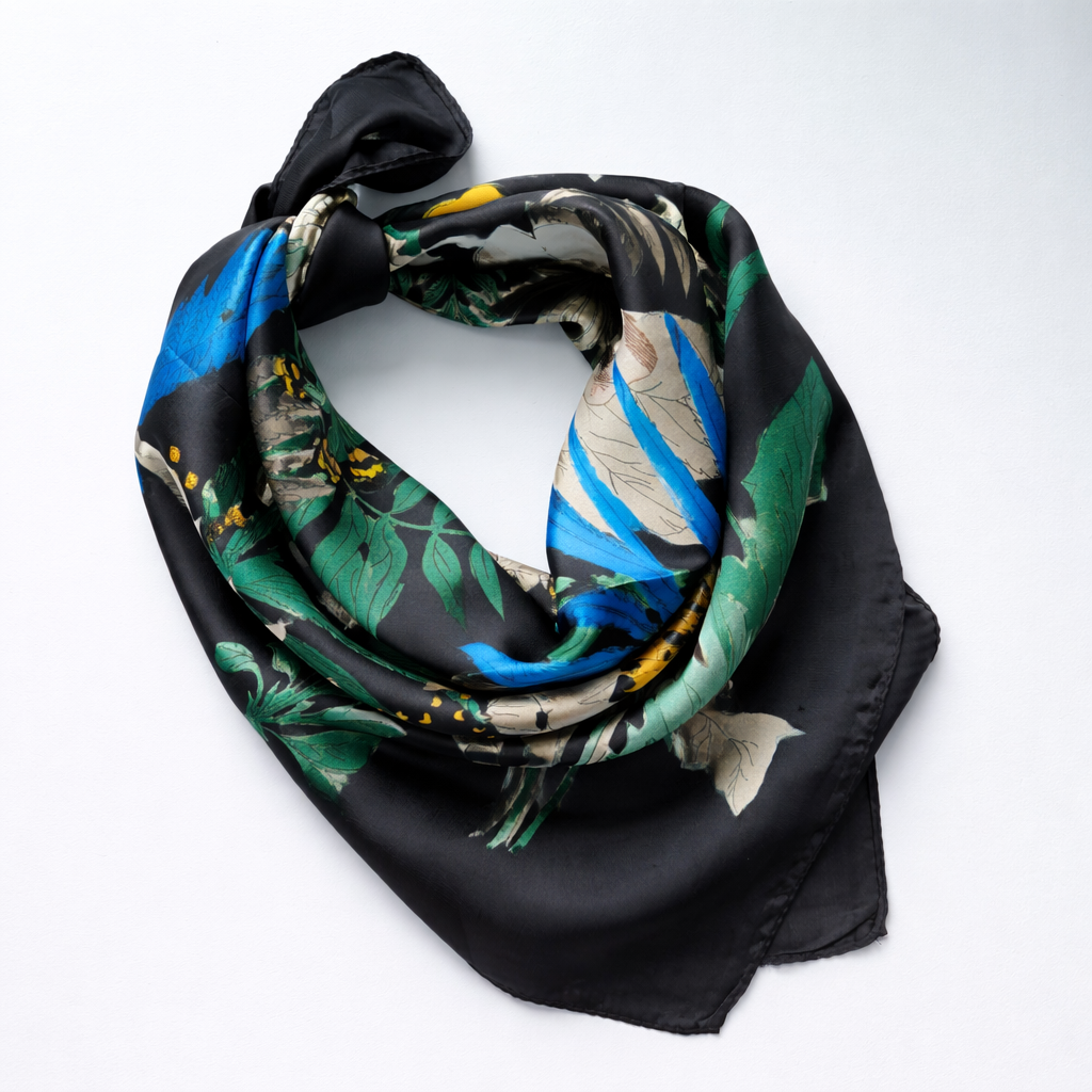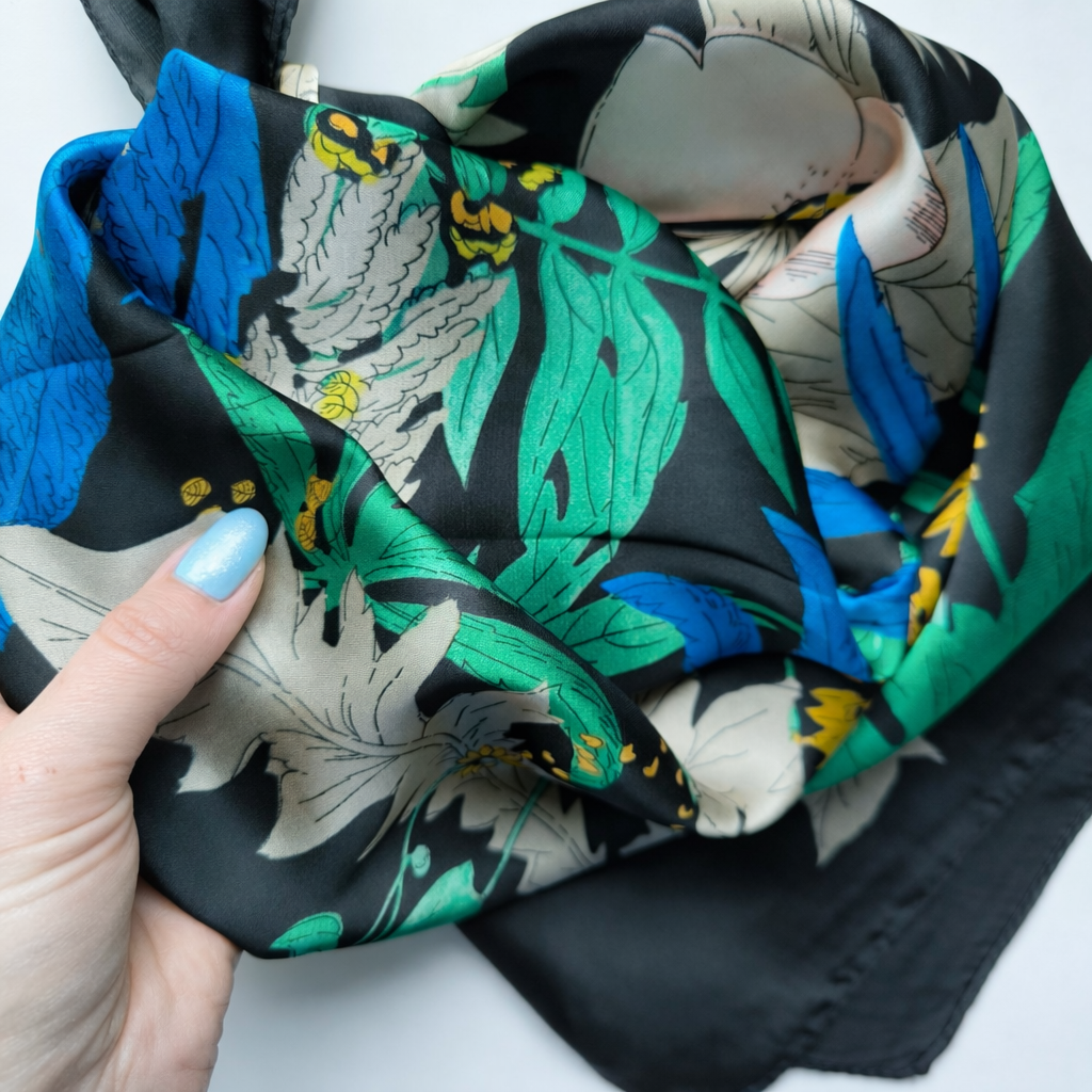 Delikatna, lejąca tkanina pięknie układa się przy szyi – możesz nosić ją klasycznie, w formie trójkąta albo bardziej nonszalancko.