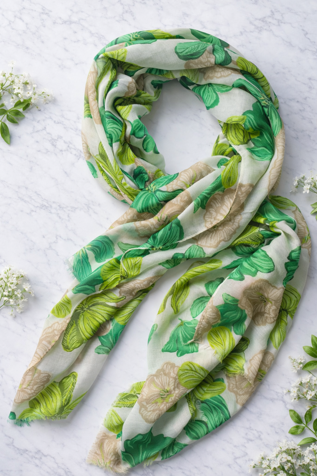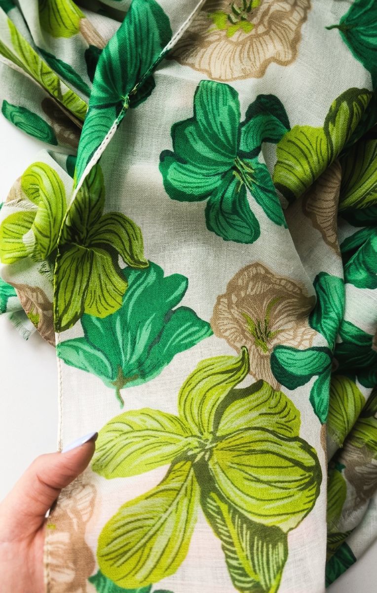 Świeży, lekki i pełen naturalnej energii. Roślinny wzór w odcieniach zieleni i beżu.